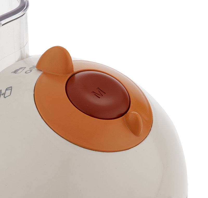 درپوش که درواقع یک موتور است روی ظرف قرار میگیرد؛ اما مزیت این دستگاه دکمه شروع فعالیت در بالا است که بهصورت فشاری عمل میکند. موتور خردکن با قدرت 300 وات کار میکند و در پایهی خردکن واقع شده است.